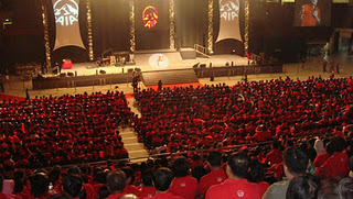 5.30 am-Early morning all staff n agency must wait bus in d office (AIA branch Alor Setar)..we're go by bus...about 4 bus go to Kuala Lumpur..Along the way we stopped at RNR for breakfast..after that we continue d journey..11.30am-We already reach in Kuala Lumpur, we're prepared a hotel to relax before the event..The event was started on 3.00pm..All went to d Stadium Bukit Jalil..I saw many bus there..